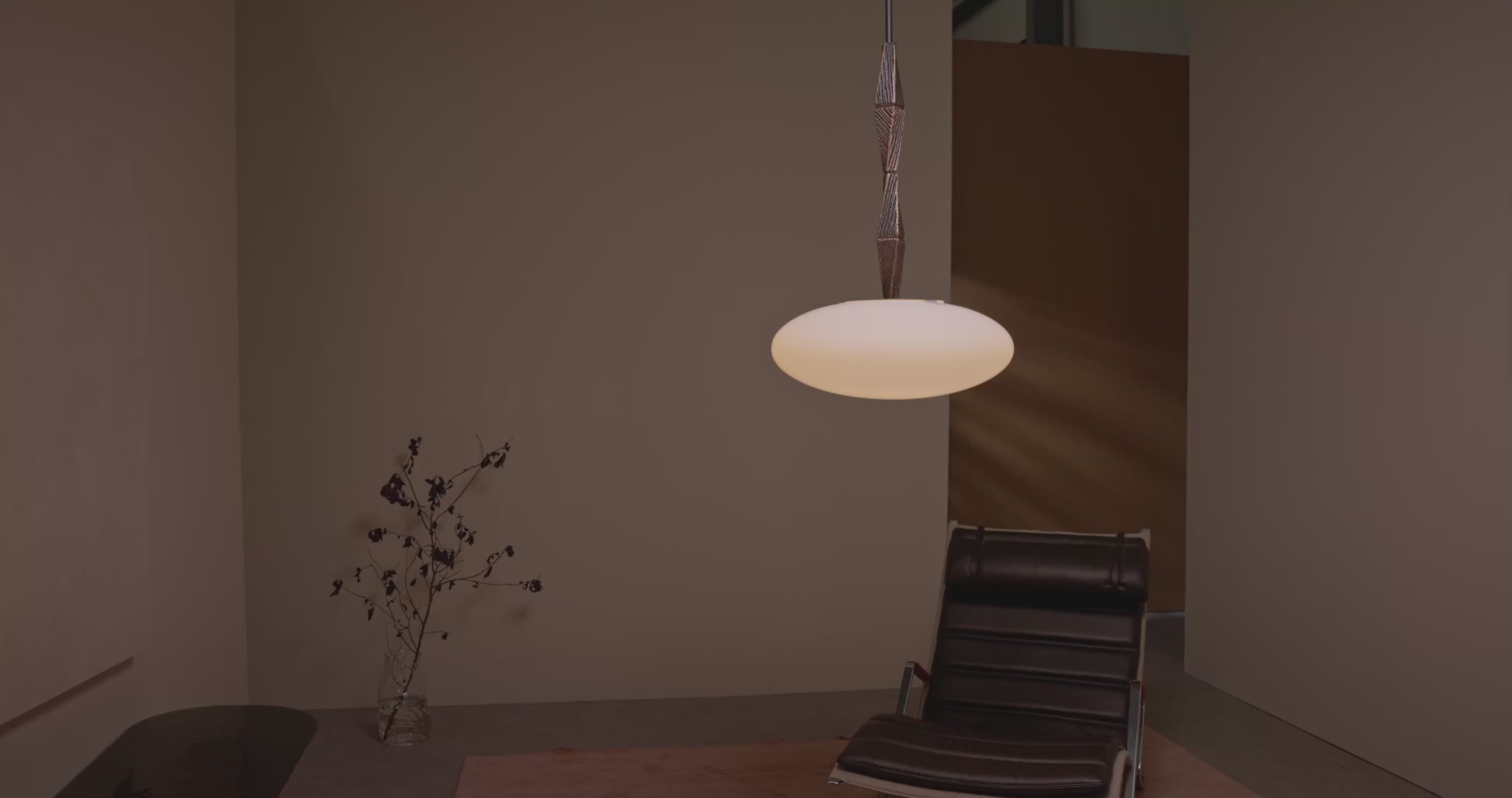 The Jules Pendant by CTO Lighting is a beautifully refined lighting piece that blends architectural simplicity with artisanal craft. Named after Belgian designer Jules Wabbes, it features a sculptural cast bronze framework paired with a blown, acid-etched glass shade that diffuses light with a soft, warm glow.