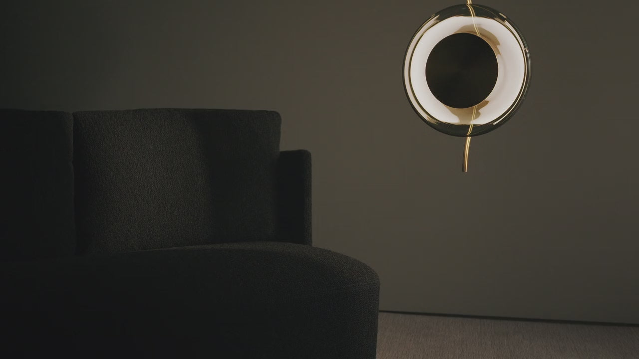 Inspired by the hypnotic motion of a timepiece, the collection embodies balance and refinement. Light radiates in soft concentric bands, diffused through the curved glass to produce a mesmerising and sculptural illumination.