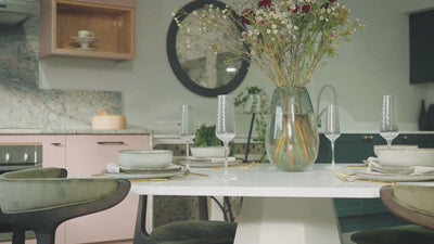 When crafted in travertine, the Château reveals a softer, earthier expression. The subtle texture and natural markings lend warmth and authenticity, allowing the material’s inherent beauty to take centre stage. Under Steve Bristow’s considered craftsmanship, the table becomes more than a functional object — it carries the quiet gravitas of a sculptural centrepiece.